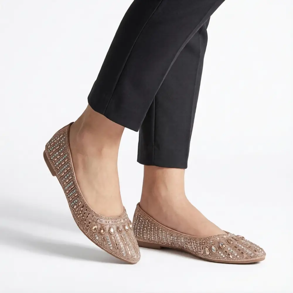 Add elegance and sparkle to your footwear collection with our premium women’s golden embellished party flats. Designed with stylish decorative details and modern craftsmanship, these shoes offer the perfect balance of fashion and comfort.